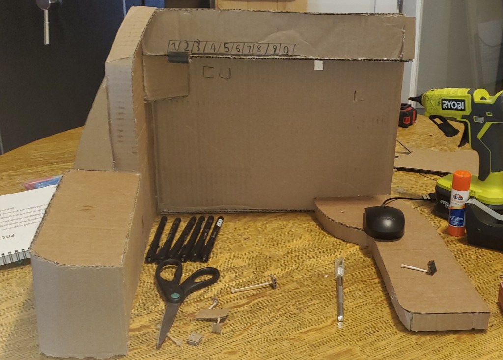 Yesterday, I started making a flight simulator out of cardboard that works with a laptop.