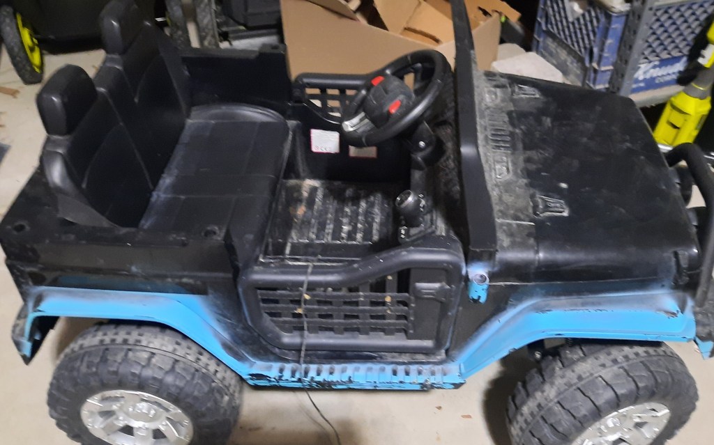 For a while now, we have had an electric ride-on toy jeep that I have turned into different things.