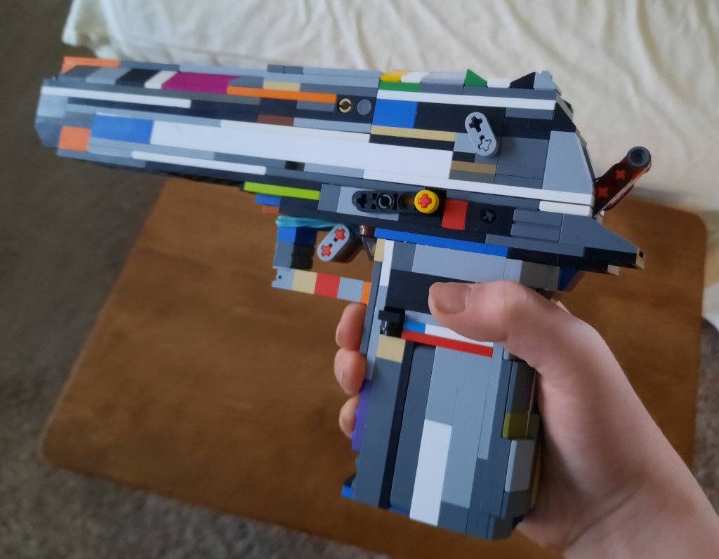Yesterday, I finished building a Lego Desert Eagle (Deagle for short). The model is by a youtuber called Kevin183. He makes Lego guns and has a website where he sells the bricks and instructions to build guns.