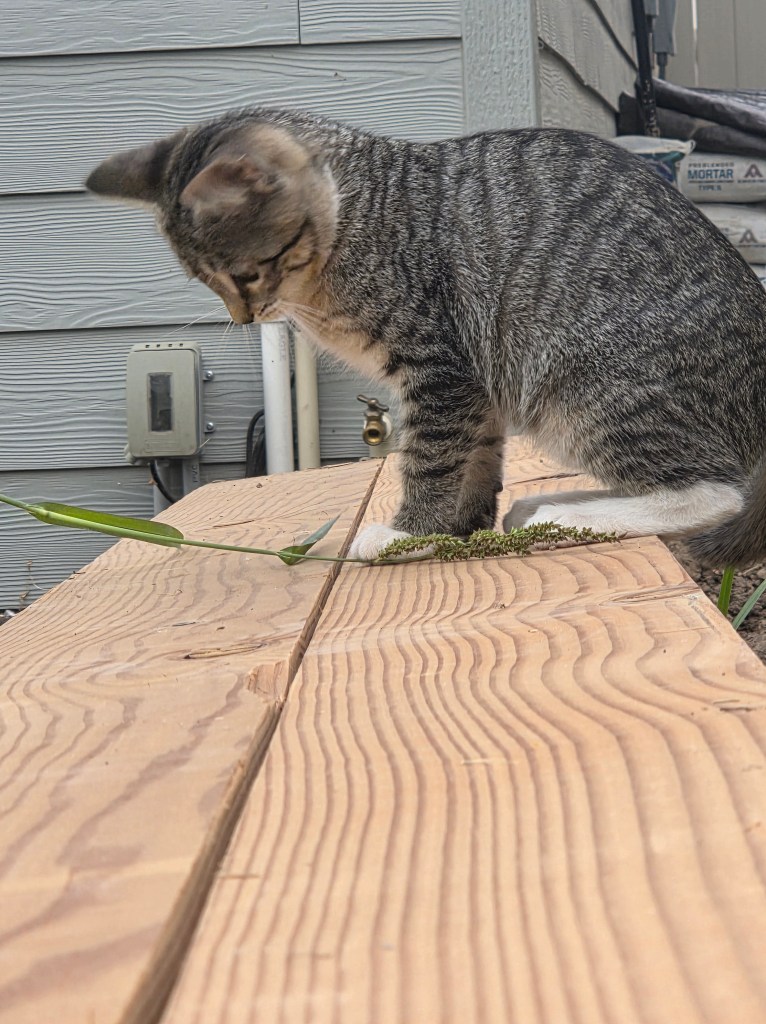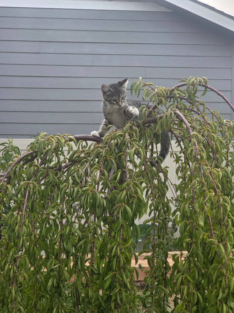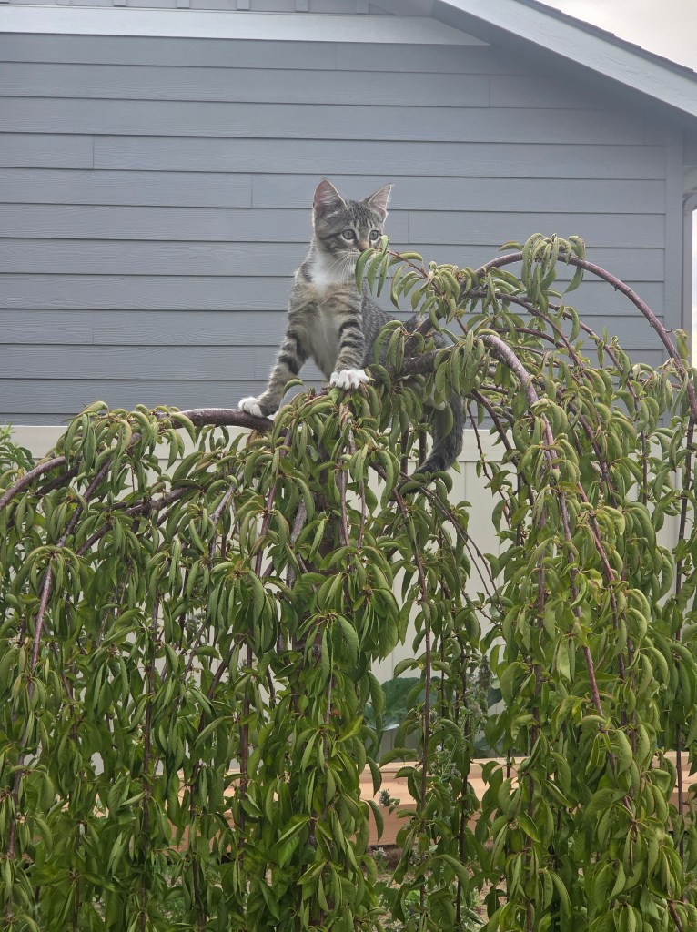 We got her because our other cat, Angus, has been really bored lately, so we got this kitty so Angus would have someone to play with. So far, Angus hasn’t been acting bad, he just doesn’t like that there’s another cat in the house. They have chased each other around and sniffed around where the other cat had been, but Angus isn’t so sure he likes her.