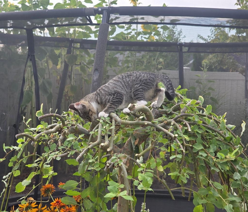 Last week, I got a kitten from my friend, Philip. The cat is 14 months old and is a black, gray, brown, and white Tabby. We named her Agnes, like our other cat, Angus. However, Agnes doesn’t really respond to her name, so we just call her kitty.