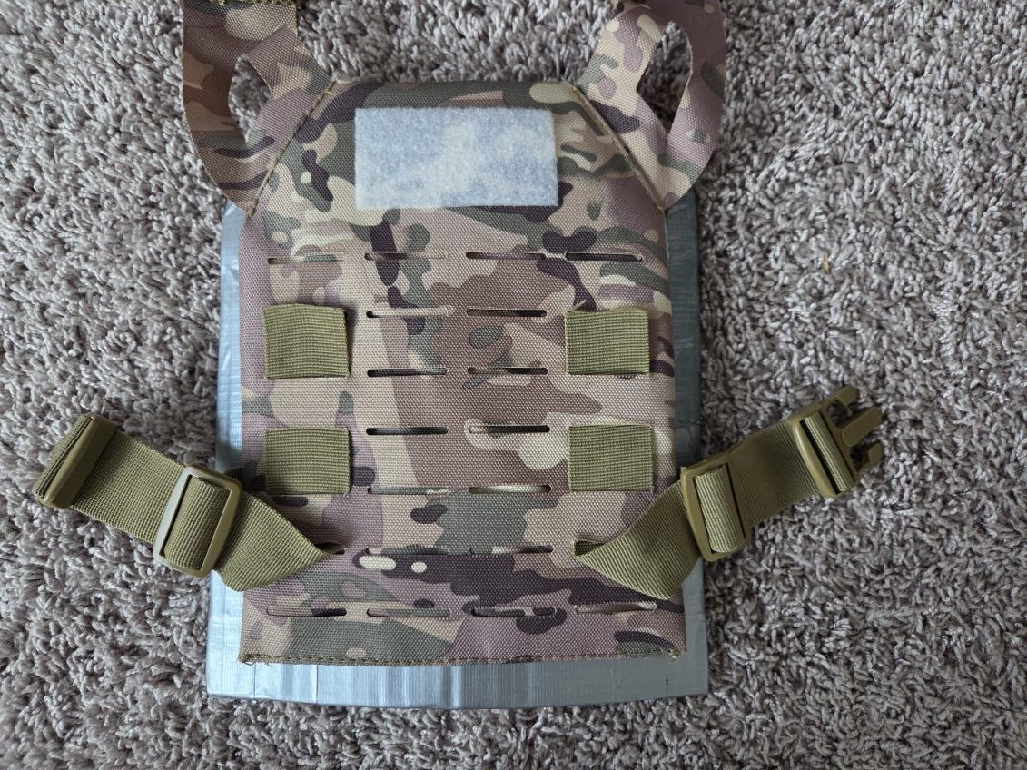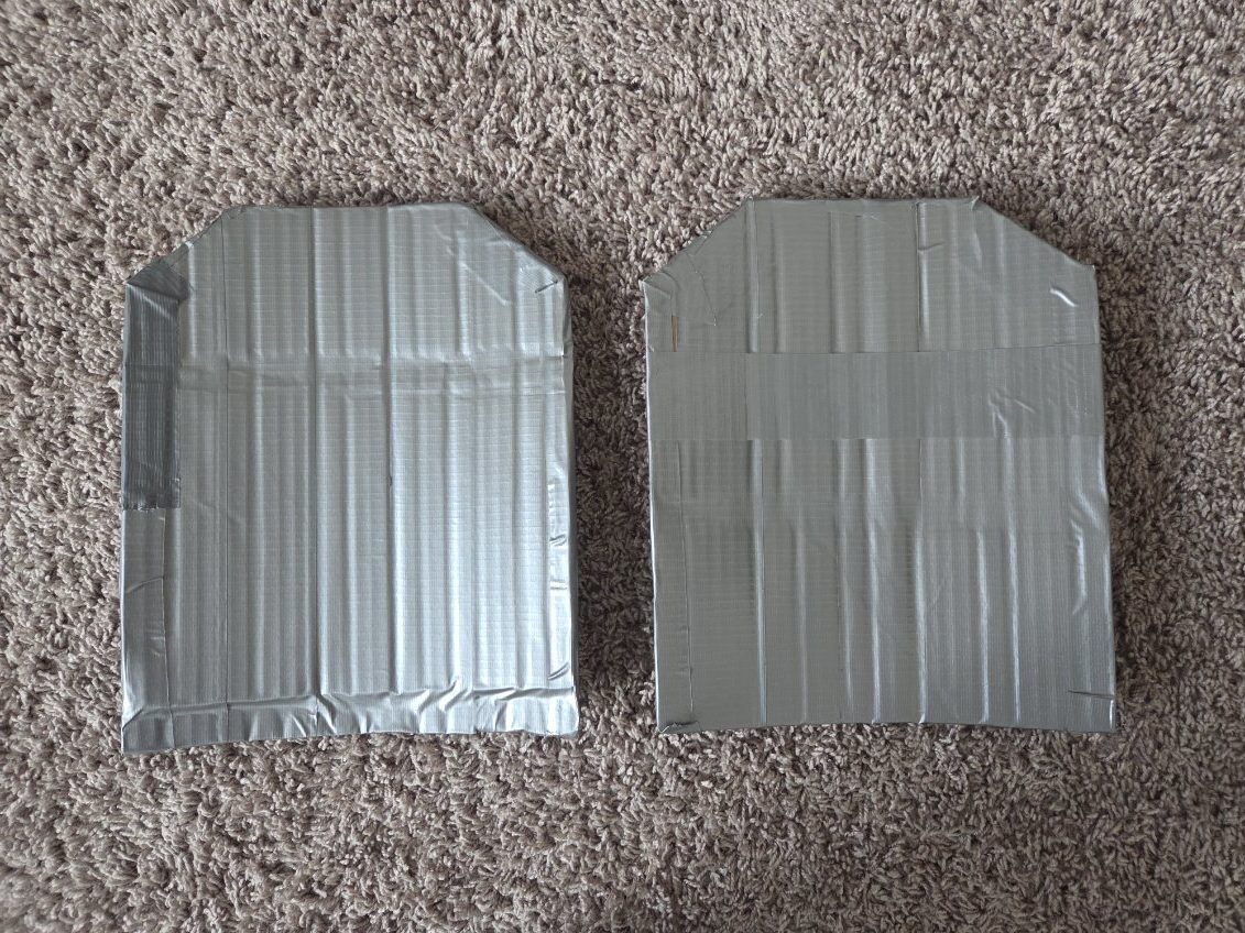 Yesterday, I made cardboard plates for my airsoft plate carrier. But since my plate carrier is so small, and the plates I made are close to accurate size, they stick out the bottom and the sides. I am looking to get a new plate carrier that’s bigger, so I hope I can make them fit in that.